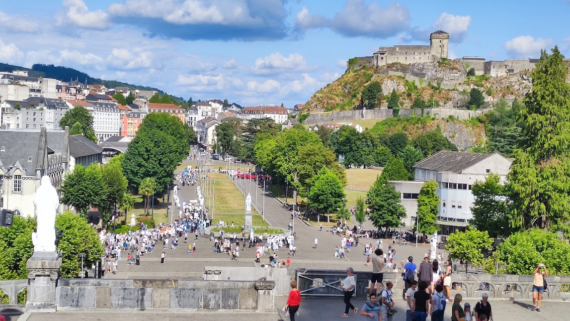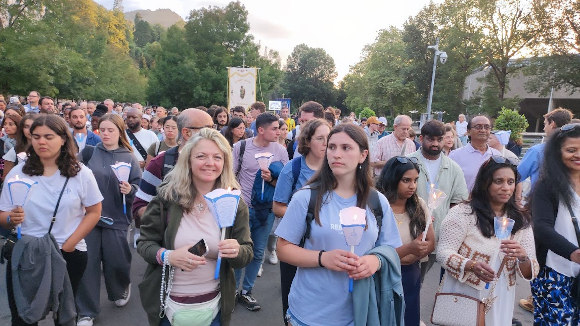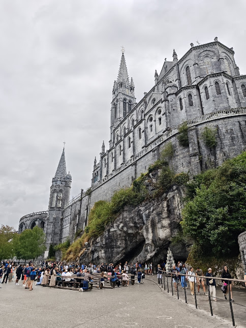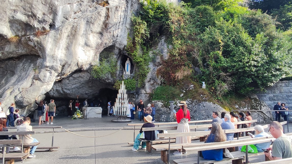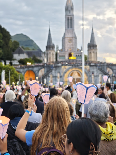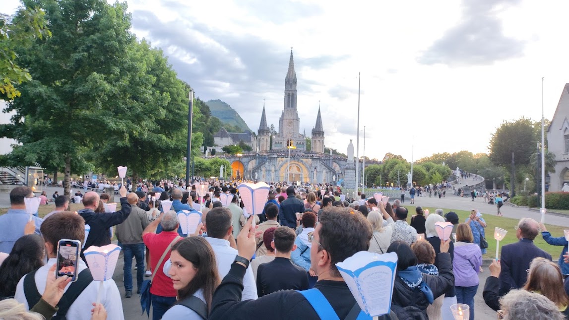 El primer día de peregrinación lo pasamos en Lourdes, con visita a los distintos lugares y basílicas marianas y participación en el rosario nocturno.
