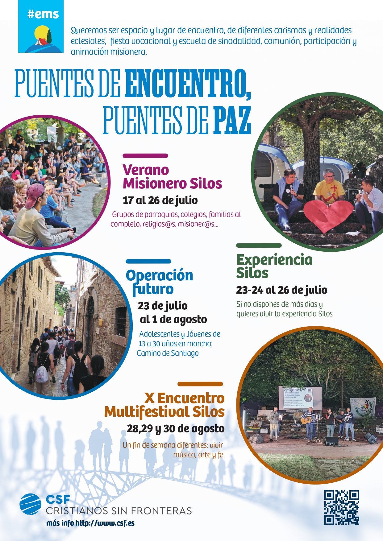 Leer más¡¡ENCUENTROS MISIONEROS SILOS!! Tras celebrar el pasado verano nuestro 50 aniversario de Encuentros Misioneros Silos… ¡¡ DE NUEVO, OTRO VERANO trabajando con ilusión en la animación misionera!! Fieles a la vocación de animación misionera, que es nuestra razón de ser. Con alegría, ilusión y pasión por la misión renovadas. PUENTES DE ENCUENTRO, PUENTES DE PAZ…